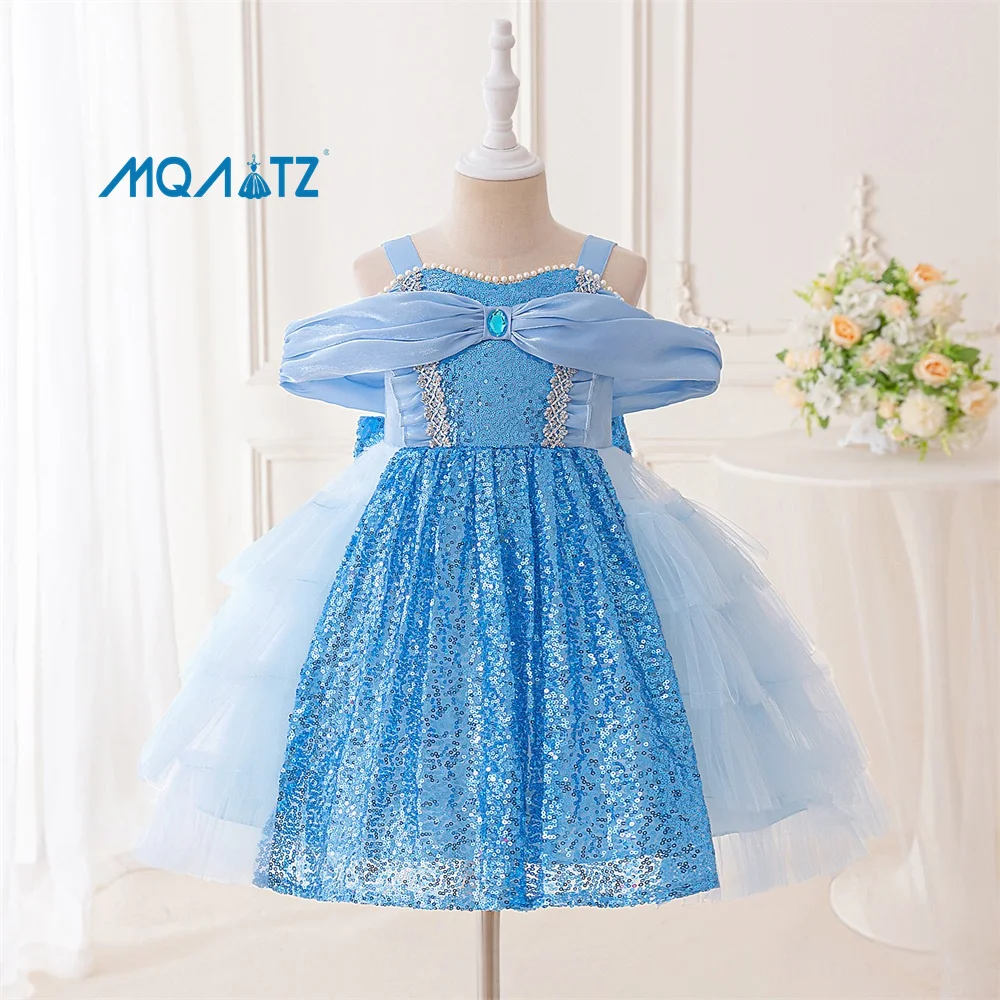 MQATZ Blue Sequin Tutu Costume for Kids Performance Wear for Children's Birthday Party Dress